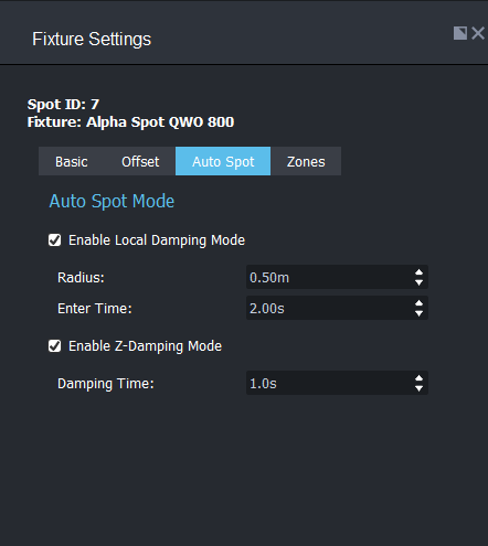 Fixture Settings - Auto Spot tab