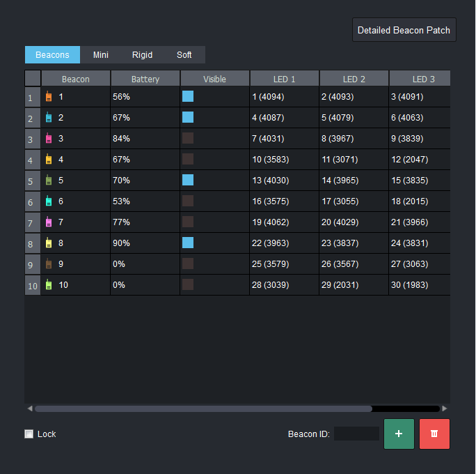 - Lock: Select this checkbox to lock the Beacons list and disable the Beacon ID box, adding and deleting Beacons in the table.(Available only in the Beacons tab.)