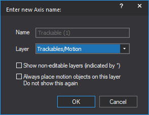 2. In the Enter new Axis name window, click the layer for the Trackable from the Layer drop-down list.