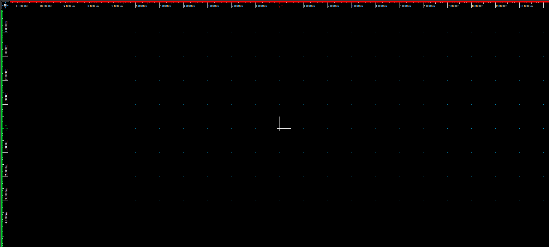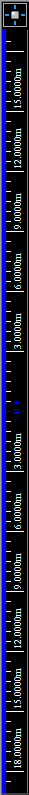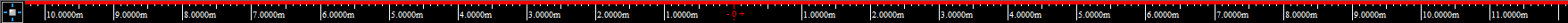 The Ruler Tool helps you design your show file in the Wireframe views of the CAD mode, providing a visual aid for coordinate reference and measurement. By default, the ruler is aligned with the document origin and displays coordinate information along the top and left side of the view. Its scale matches the default grid scale. The ruler has different colors to represent different axes (X=Red, Y=Green, Z=Blue).
