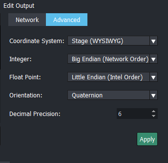 • Integer: Choose how integer data is sent. Click on this drop-down menu to change the network order of integer fields output in RTTrPM packets from Big Endian (Network Order) to Little Endian (Intel Order).