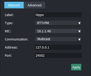 • NIC: Click on this drop-down menu to select the local IP address where the output data is being sent through for the selected active module.