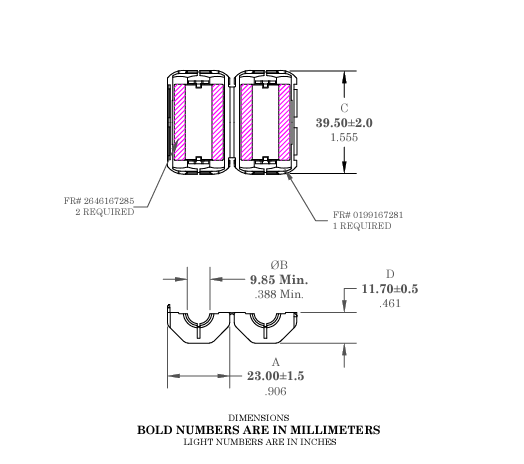 The ferrite filter is a cylindrical clamp fastened over cables to conform with regulatory standards. A ferrite filter must be clamped over any cables connected to the TimeKeeper and BTRouter. Ferrite filters should be fastened on any connected cables as close to the respective device as possible.