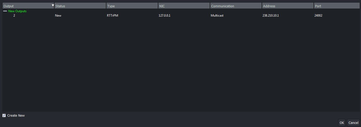 - Create New: This option will create the new outputs as defined in the New Outputs section.