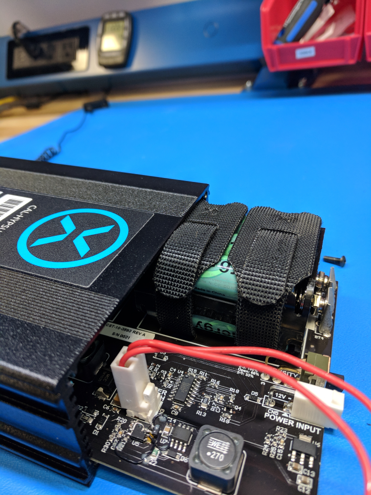 - Once you have replaced the batteries, tighten the Velco straps on the batteries.