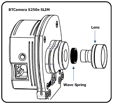 1. Screw the lens onto the BTSensor with the included plastic lens tensioner between the M12 lens adapter and the lens itself. Tighten until proper focus is achieved.