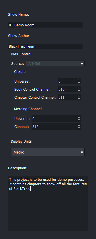 Result: The selected unit of measurement will apply to the BlackTrax project.