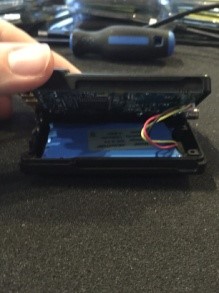 - Carefully separate the two halves of the BTBeacon case. There is a ribbon cable connecting the motherboard in one half of the case, to the lithium-ion battery in the other half of the case.