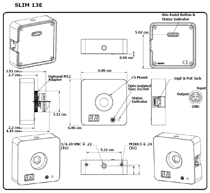 - Optional Lens: 3.5 mm F#1.8 (wide band AR coated)