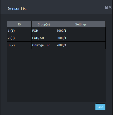 1. At the bottom of the Sensor List widget, click the SYNC button.