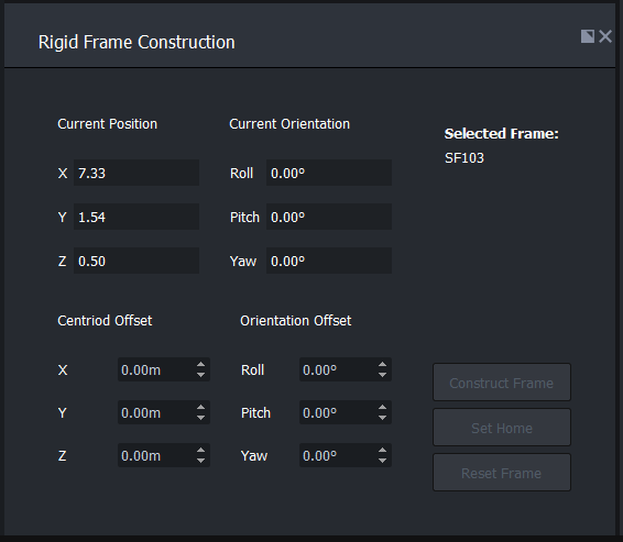 Once the LEDs have been assigned, the frame can be initialized and the solution can be calculated. Click the Apply Changes button in the Rigid Frame Construction widget to initialize and calculate the solution. This will change the status of all current frames with LEDs assigned to them from "Done" to a list of the LEDs that have not yet appeared (visible to the tracking system). This will send all ready frames to the global Beacons widget(s), and allow them to be assigned to a trackable. The Reset All Frames button will not affect soft frames. The centroid of a soft frame cannot be set as the centroid if it is constantly being re-calculated based on the position of the LEDs that the frame is made up of.