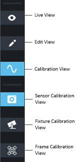 - Views: The ability to change between the three core views: Live, Edit, and Calibration.
