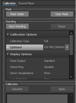 3. Click the OptiWand drop-down menu under Calibration Options then click OptiWand-CW-500.