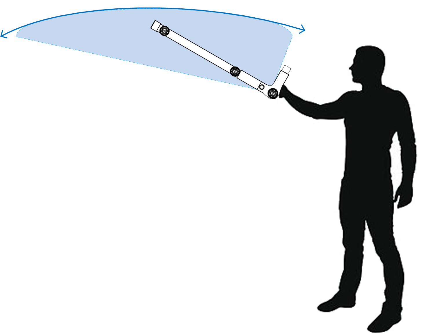 - Hold the Wand Module from below with the Mini Beacons facing upwards and wave it underhandedly in a fanning "pizza-slice" motion while moving around the tracking space to create multiple data points. Ensure that all the LEDs are always viewed by the BTSensors.
